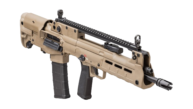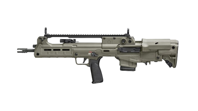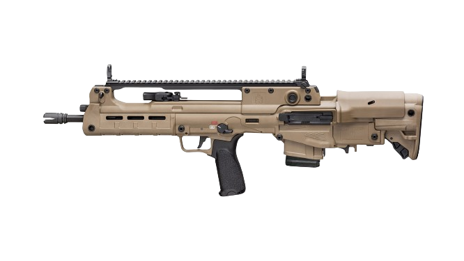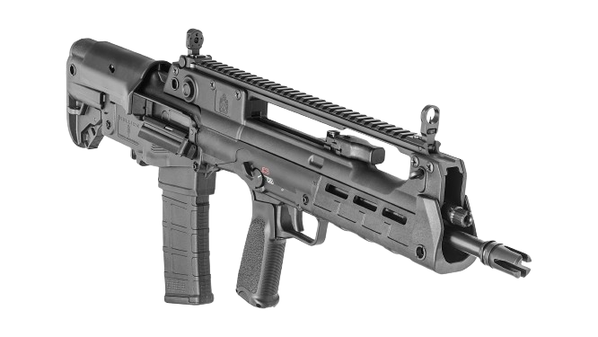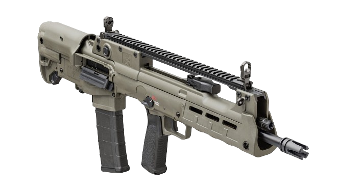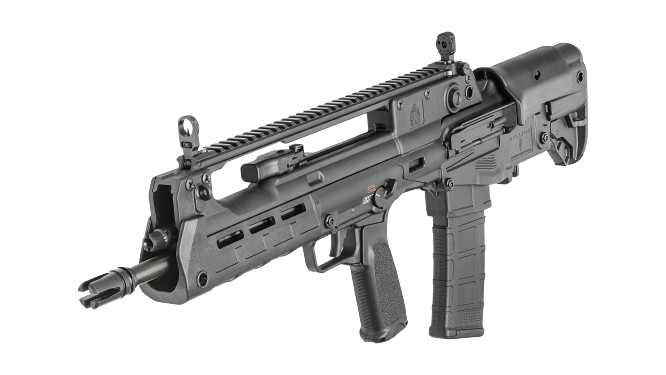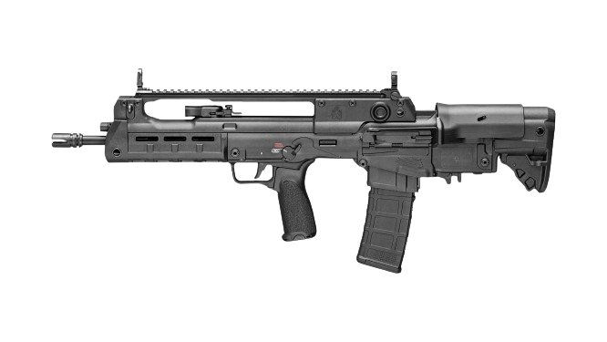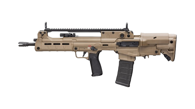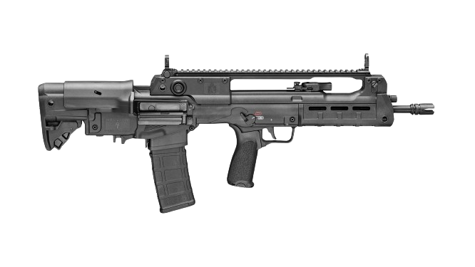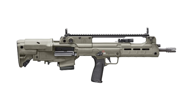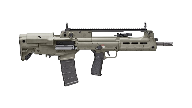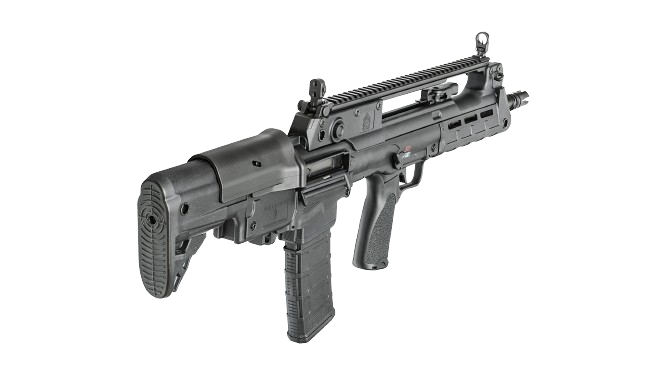 These newly released variants feature extended 18” and 20” barrels, resulting in a 5.56mm that still offers the compact handling characteristics of a bullpup, but with enhanced velocity and downrange performance. In addition, the 20”-barreled version features an overall configuration similar to that of the Croatian VHS-D2, a designated marksman version of the VHS-2. The 20” Hellion is outfitted with a distinctive ribbed forward section of barrel for enhanced cooling as well as an integrated bayonet lug.